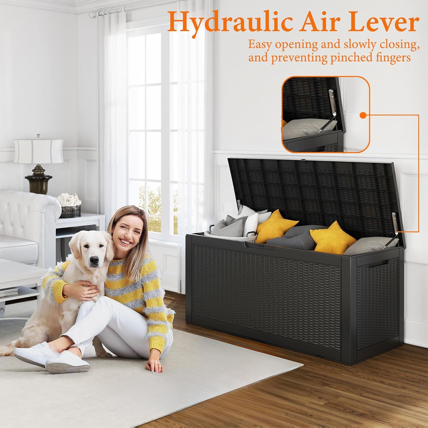 100 Gallon Resin Deck Box, Lockable Patio Outdoor Storage Box for Furniture, Garden Tools and Tools Storage, Waterproof Outside Storage Boxes - Black