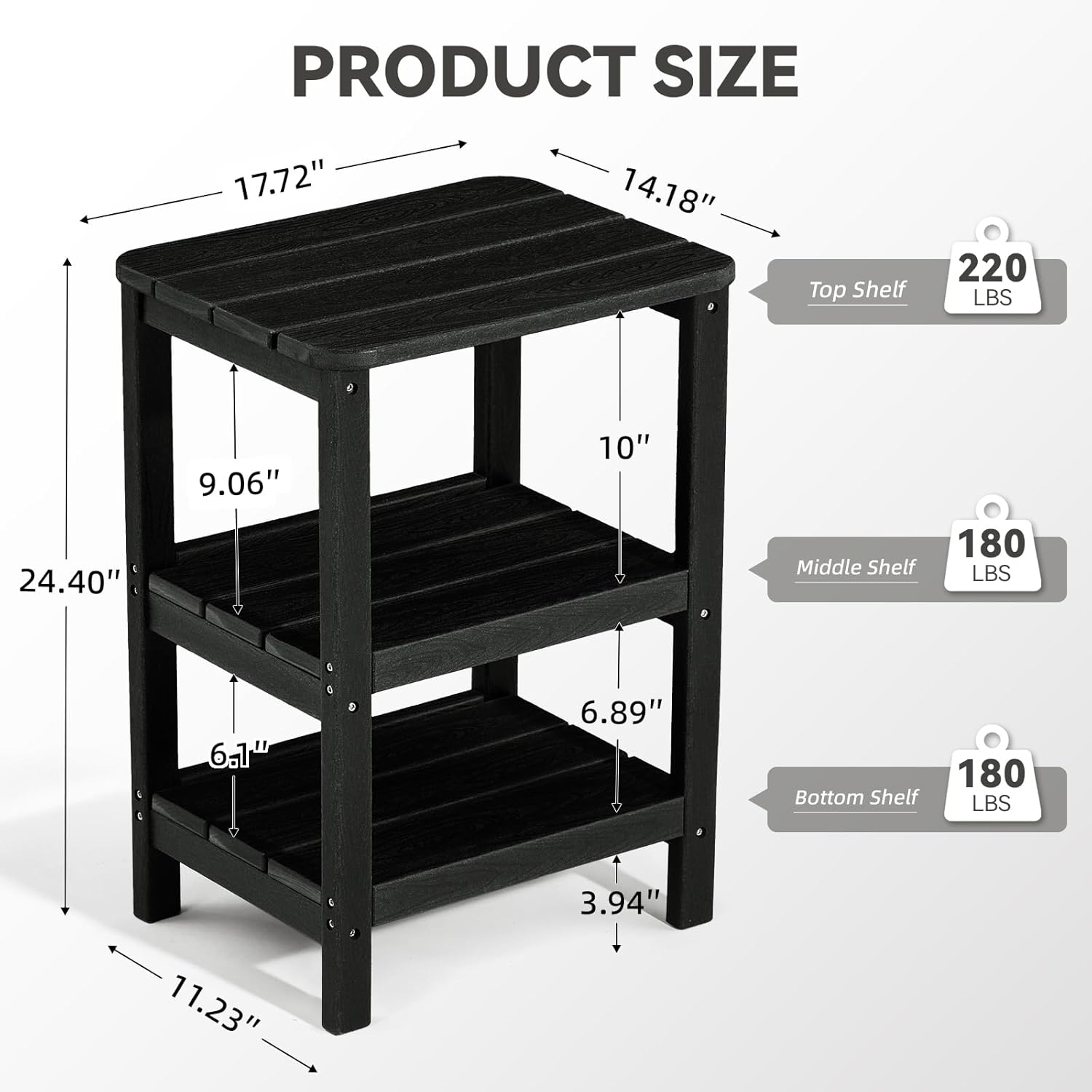 3 Tier Outdoor Side Table Adirondack Side Table HDPE End Table Patio Side Table Rectangle Tables for Outdoor Backyard Garden Balcony (Retro, Black)
