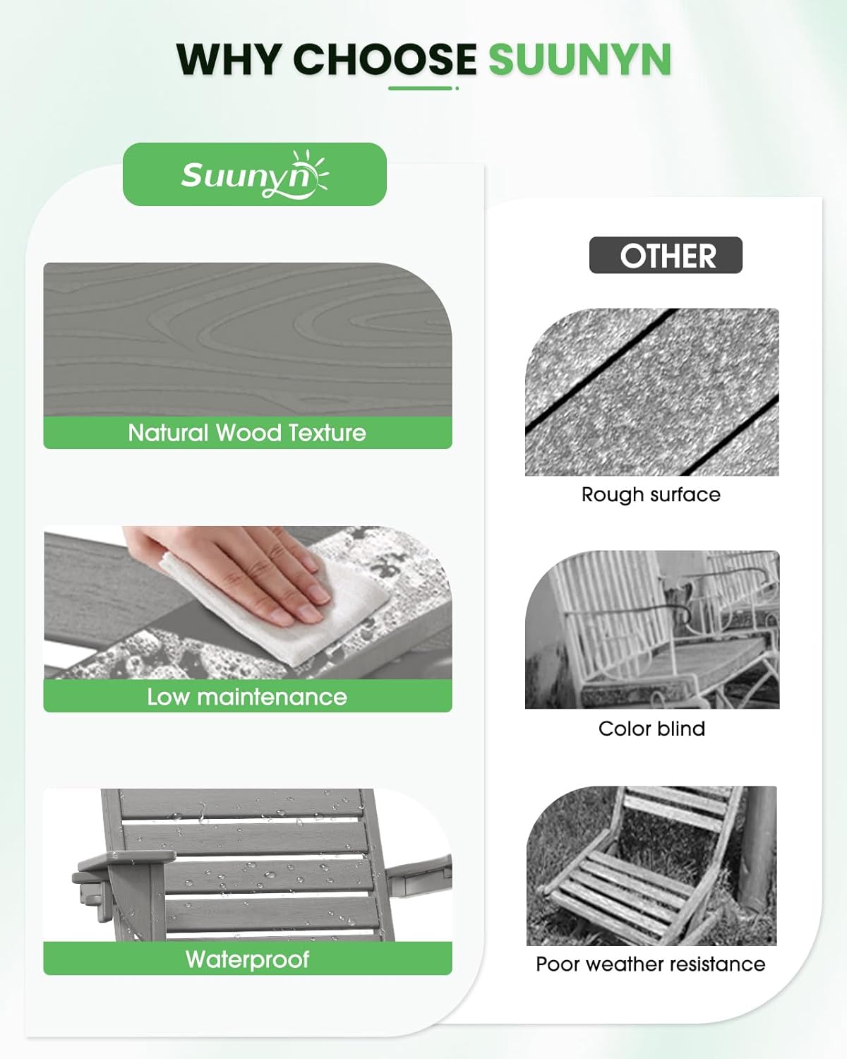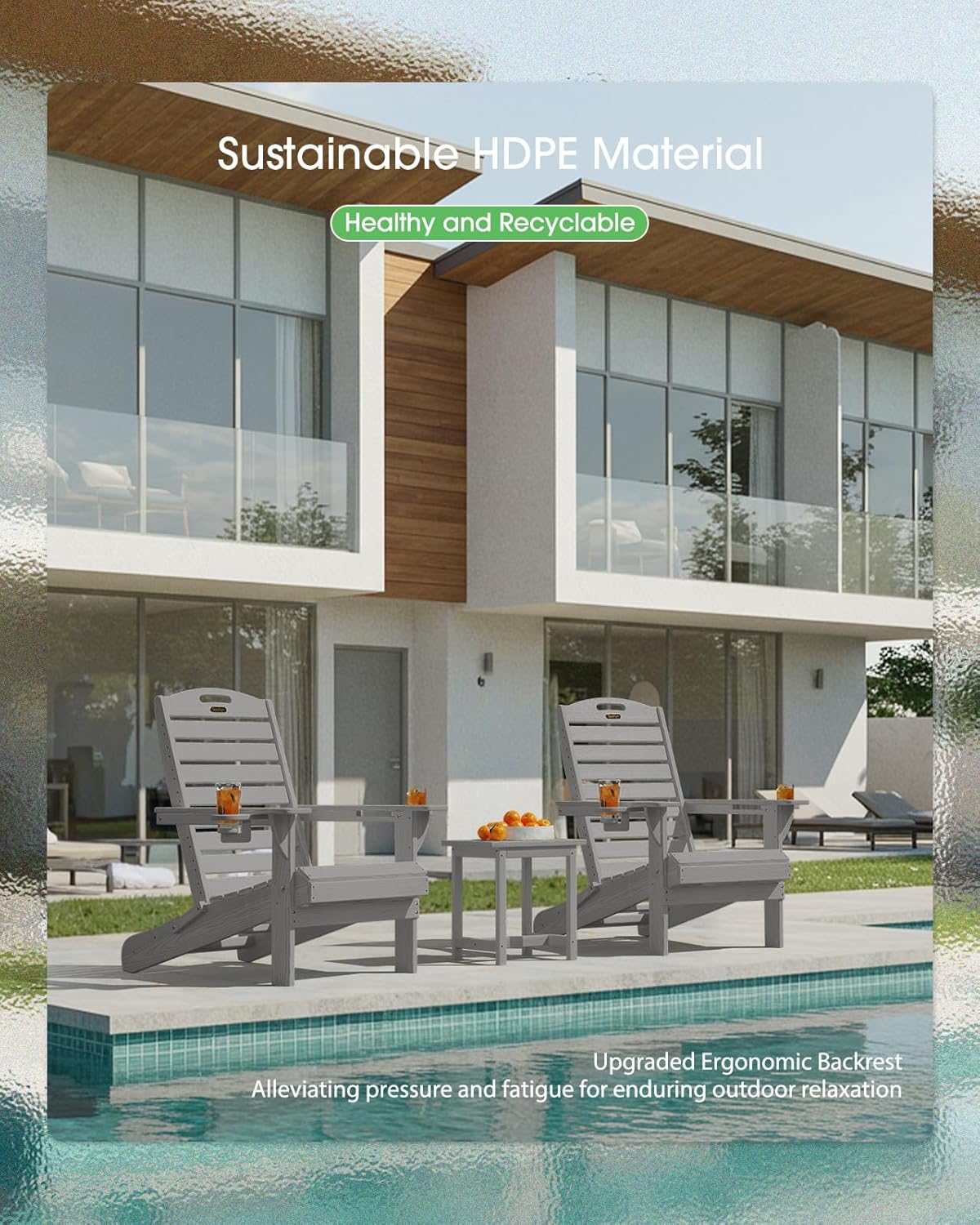 Adirondack Chair Folding HDPE Adirondack Chairs with Cup Holder, Outdoor Fire Pit Chairs All-Weather Lawn Chair for Deck Patio Garden (Grey)