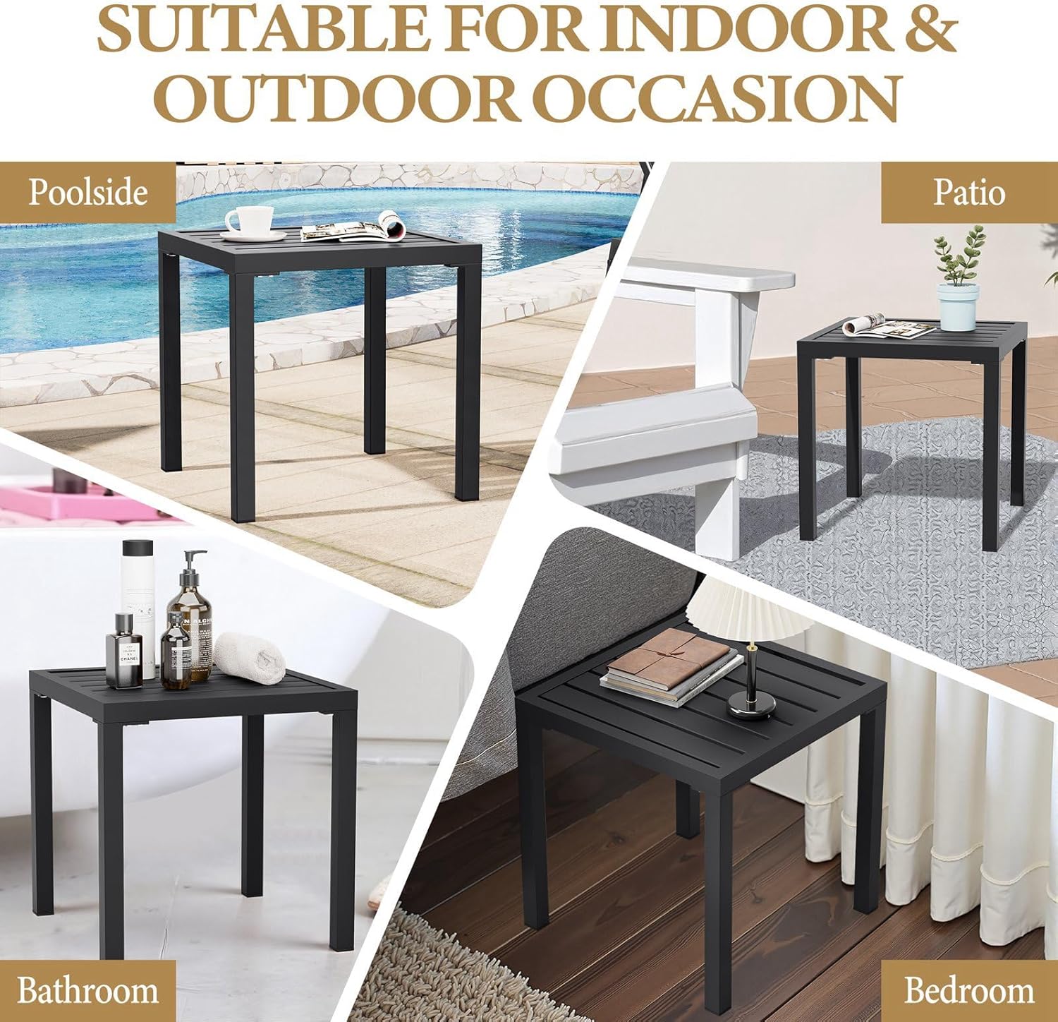 Crestlive Products Outdoor Side Table Set of 2 - Small Metal Square End Table - Easy to Assemble, Weather Resistant Ideal for Garden, Patio, Poolside, Beach, Balcony, Porch