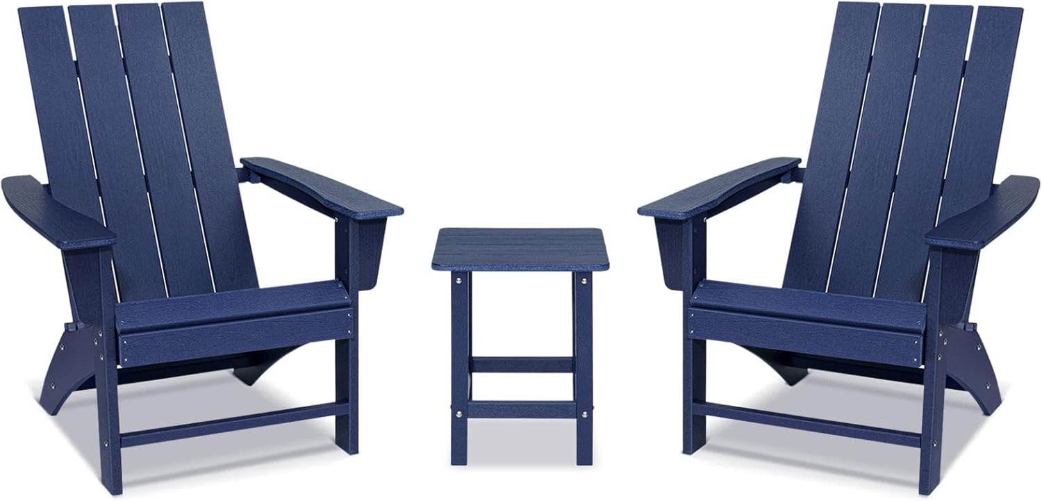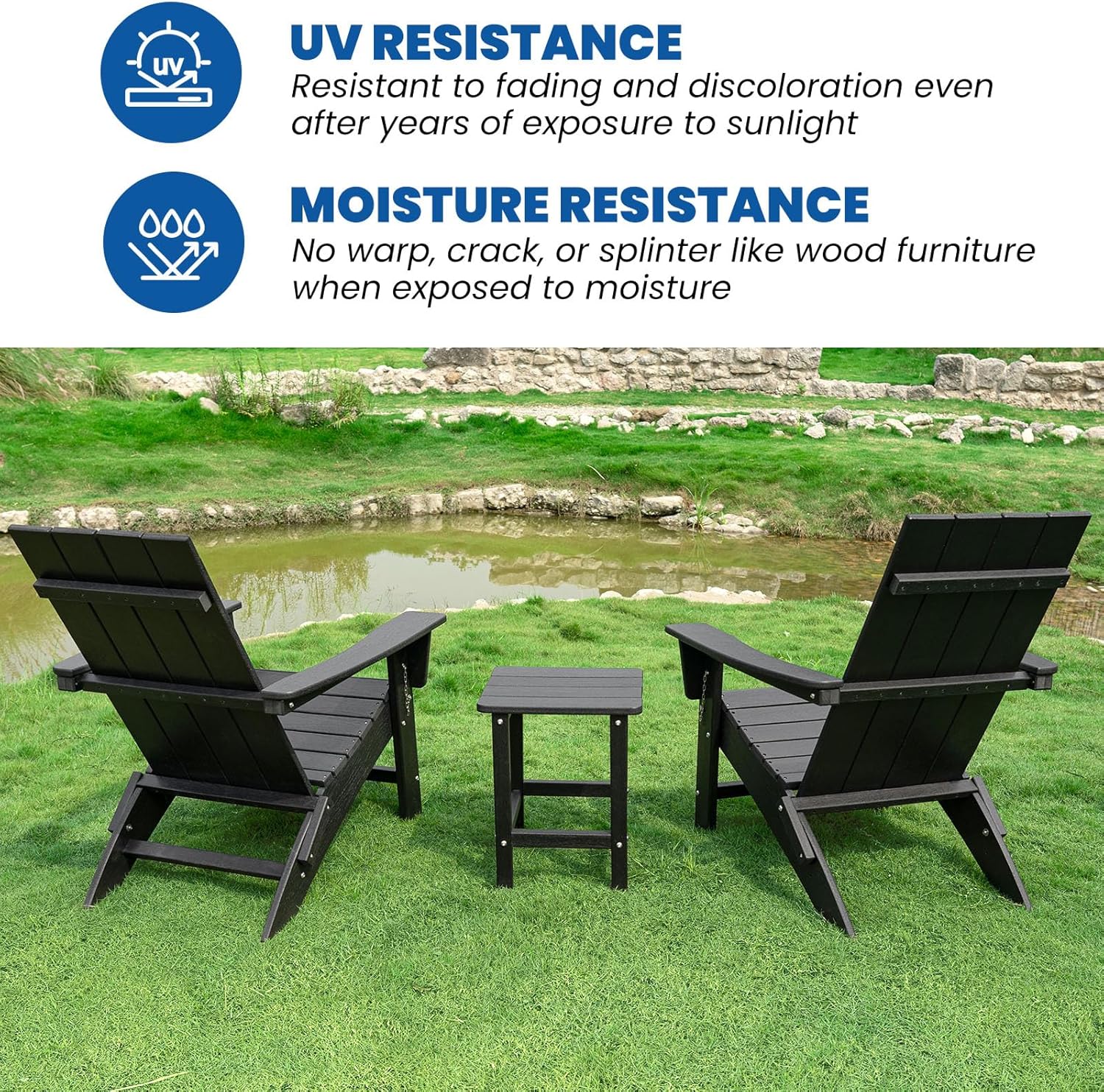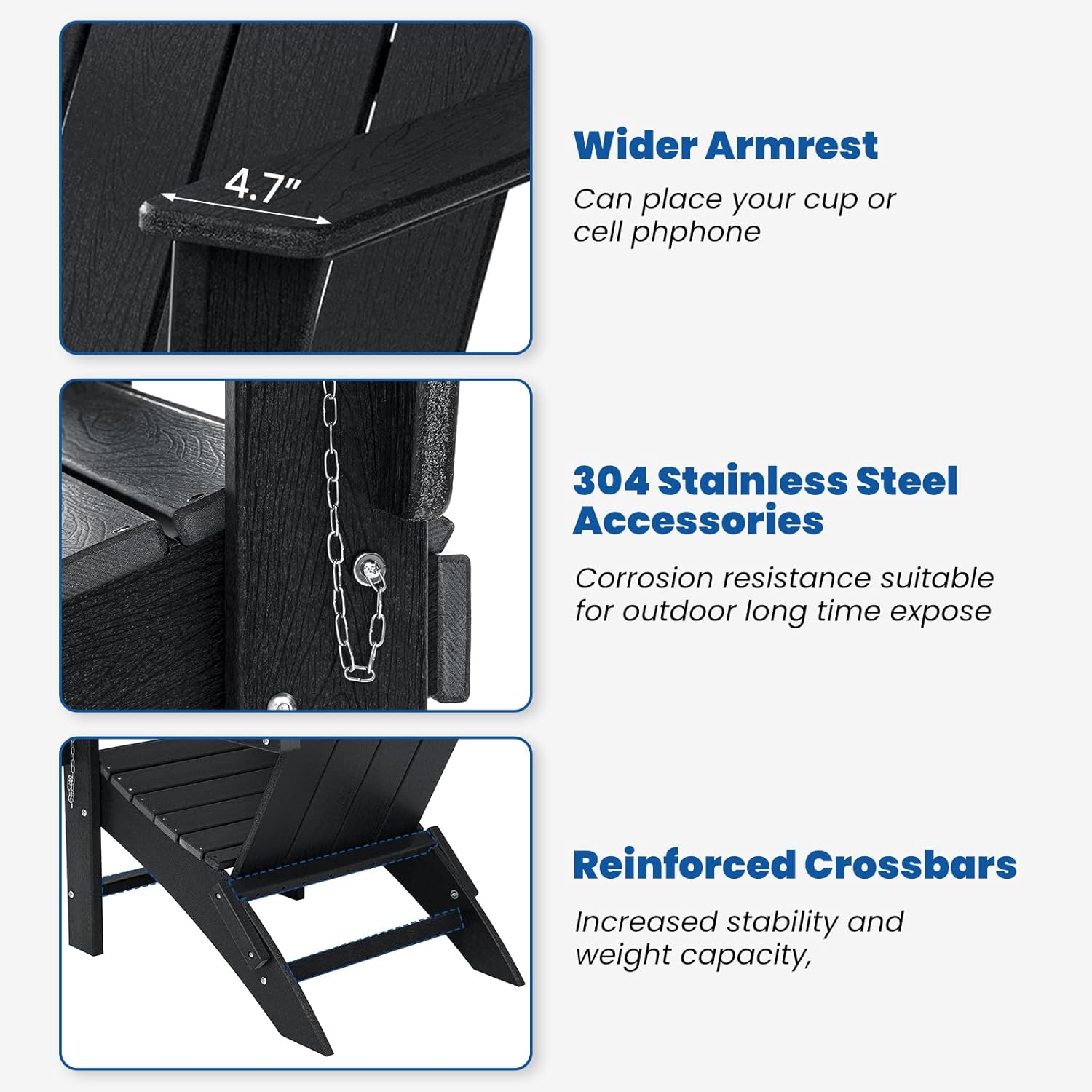 Folding Adirondack Chair Set of 2 with Table Weather Resistant Foldable Fire Pit Chairs HDPE Outdoor Adirondack Chair for Patio Front Porch Pool Garden Deck Fire Pit Outside, Black