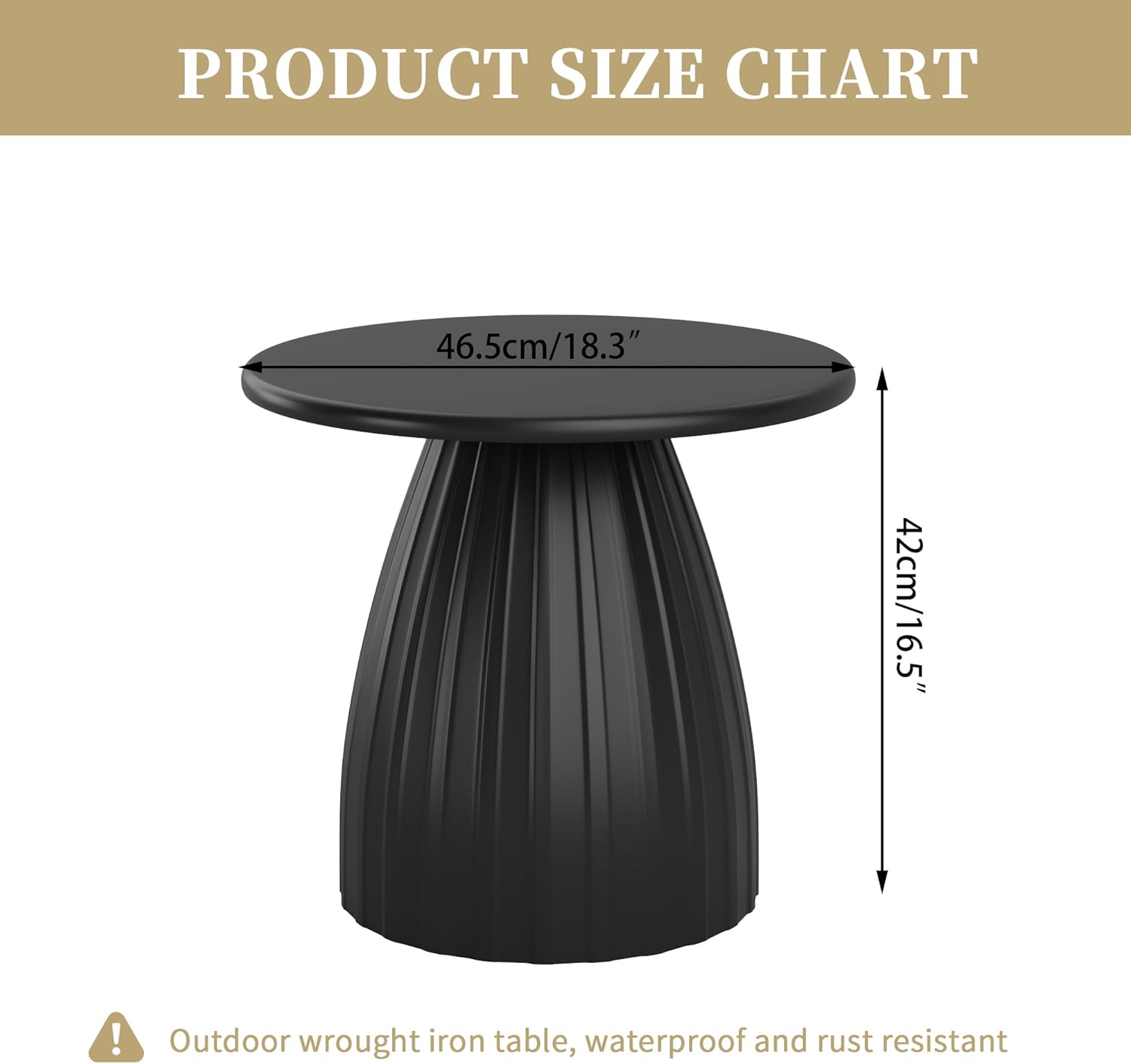 Round Metal Patio Outdoor Side Table, Steel Outdoor Accent Table, Black Small End Table Patio Furniture, for Garden, Pool, Yard, Balcony, Living Room, Deck, Weather Resistant, No Assembly